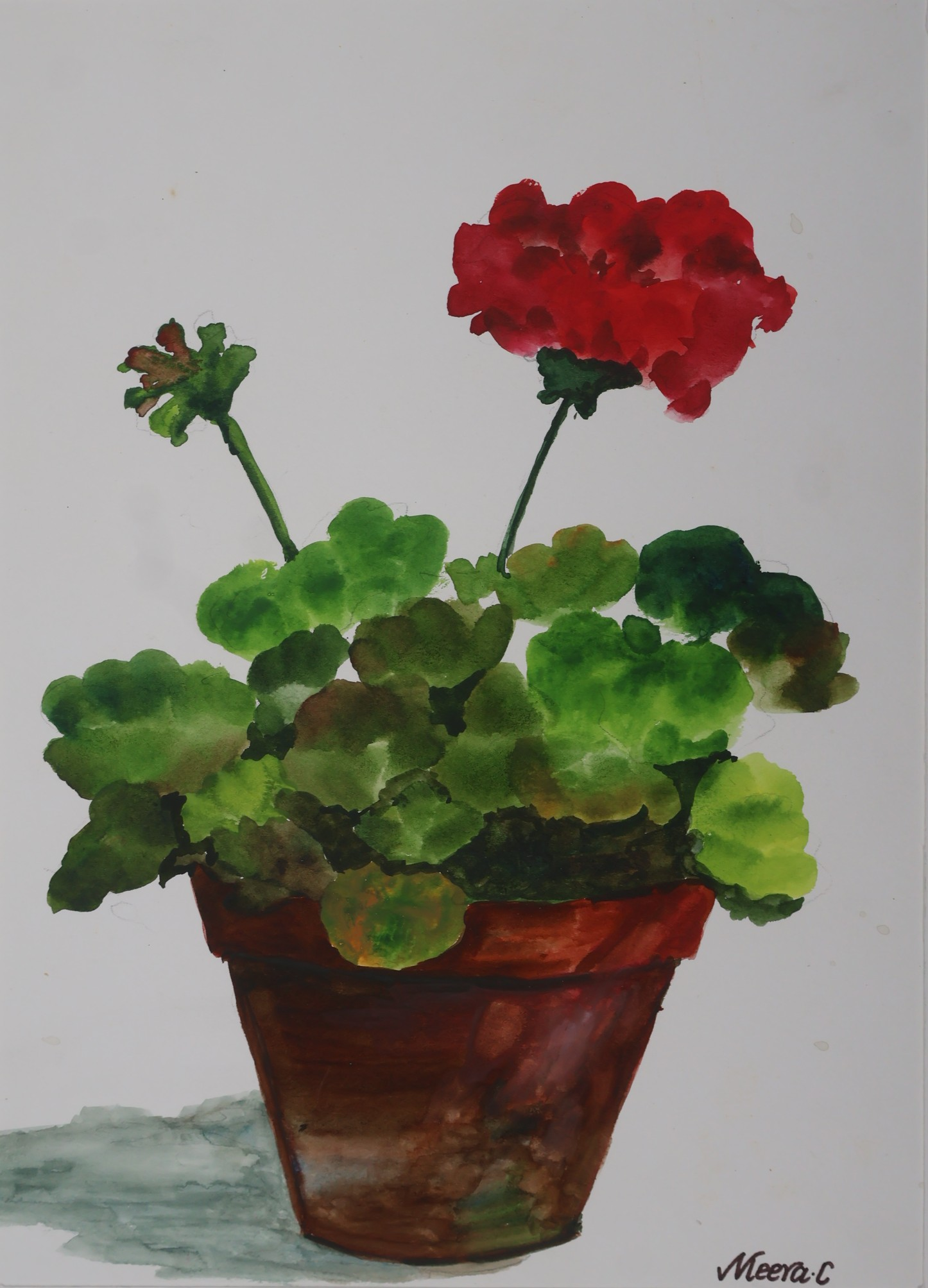 Red Geranium -Watercolor (A3) By Artist Meera.c